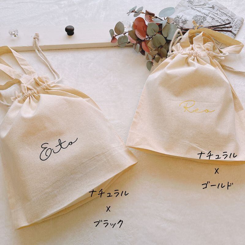\ 名入れ / 持ち手付き 巾着 HAL 筆記体